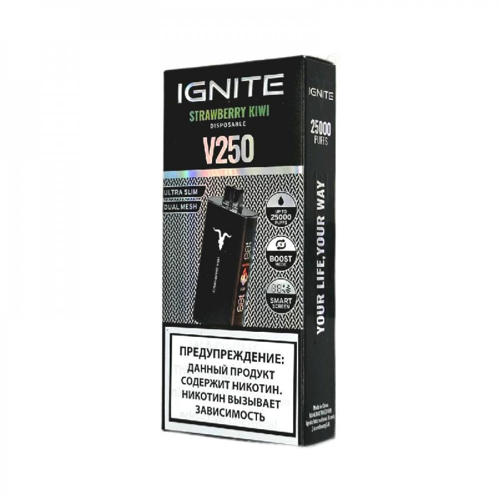 Электронная сигарета Ignite V250 Black 25000 - Strawberry Kiwi (Клубника киви) - купить в Колпино
