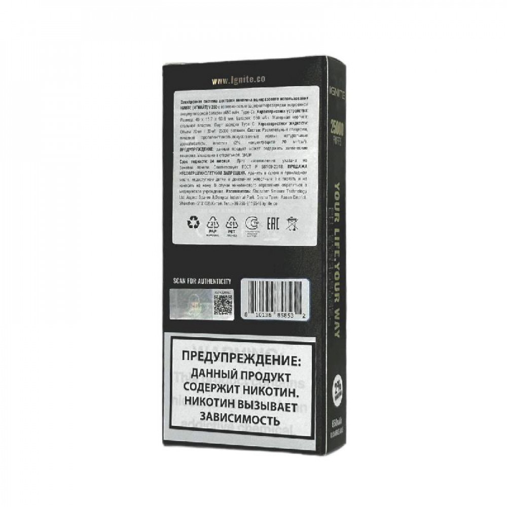 Электронная сигарета Ignite V250 Gold 25000 - Grape Ice (Виноград лёд) - купить в Колпино